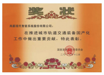 - •国家发改委在本行业唯一颁发的"轨道交通装备国产化重要贡献奖"和"国家高技术产业化示范工程"