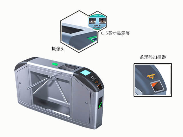 造价便宜,24小时无间断运行,支持景点二维条码门票自助检票,内置摄像头实现人脸识别,乘客通行识别算法与传感设备实现通行状态准确识别。